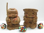 屋久杉 ほほえみ恵比寿 大黒 木彫り 一刀彫 / 素材:屋久杉 (縁起物 木彫 置物)
