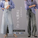 ゆるっとおしゃれ「大人ワイドデニム」【送料無料】ワイドデニム ワイドパンツ デニム ウエストゴム 選べる レギュラー丈 ロング丈 キレイ目 レディース ボトムス ハイウエスト ジーンズ 美脚 大きいサイズ デニムパンツ 美脚 ジーパン 体型カバー ストレート