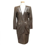 FAIRE LA SAISON セットアップ レザージャケット スカート ノーカラー 羊革 ラム 42 レディース スーツ ブラウン 茶色 女性 アパレル ブランド【中古】