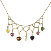 ITALY製 マルチカラーストーン チャーム ネックレス K10YG トルマリン カラーストーン カットボールチェーン 天然石 41cm ジュエリー 【中古】