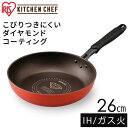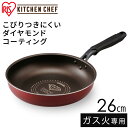 フライパン ダイヤモンドコートパン KITCHEN CHEF ダイヤモンドコートフライパン 26cm ダークレッド ダークブラウン DGS-F26 フライパン ガス火 直火 コーティング 取っ手 取っ手一体型 ヘルシー調理 長持ち 軽量 アイリスオーヤマ