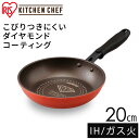 フライパン ダイヤモンドコートパン IH対応 KITCHEN CHEF ダイヤモンドコートフライパン 20cm オレンジ ブラウン DIS-F20 フライパン ih ガス火 直火 コーティング 取っ手 取っ手一体型 丈夫 長持ち耐摩耗性 軽量 アイリスオーヤマ