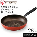 フライパン ダイヤモンドコートフライパン 28cm オレンジ ブラウン DIS-F28 IH対応 フライパン ダイヤモンドコートパン ガス火 直火 コーティング 取っ手 取っ手一体型 丈夫 長持ち耐摩耗性 軽量 アイリスオーヤマ KITCHEN CHEF [P]