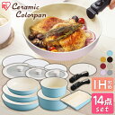 フライパン 14点セット セラミックカラーパン H-CC-SE14P ガス火対応 ih対応 26cm 20cm フライパン 26cm 20cm 鍋 深型 20cm 16cm オーブン可 調理器具 時短 便利 アイリスオーヤマ 送料無料