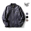 HOUSTON 公式通販 |HOUSTON / ヒューストン 8219 VEGETABLE LAMB WASHABLE TRACK JACKET / ベジタブルラムウォッシャブルトラックジャケット -全1色- メンズ Gジャン レザー 本革 ミリタリー 大きいサイズ アメカジ ヴィンテージ [8219]
