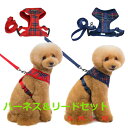 中型犬 小型犬 犬用 介護用 お散歩 簡単脱着式ハーネスリードセット タータンチェック チェック 赤 レッド 紺 ネイビー 2色展開 Sサイズ Mサイズ プードル ペット 犬 小型犬 中型犬 おすすめ 人気 散歩 お出かけ