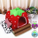 【セット内容】ハウス×1、ブランケット×1、マット×1、骨型ミニクッション(おもちゃ)×14点セット ペット用 ネコ イヌ 小屋 犬 猫 ペットハウス ドーム型 ペットベッド ソファー イチゴ型 いちご 苺 ハウス 子猫用 子犬用 小型犬用 2way