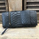 【国産・FU-SI FERNALLE】『G.B.PYTHON』谷黒染め加工・パイソンレザー/ヘビ革ラウンドファスナー長財布(11558)メンズ/レディース 革財布ウォレット エキゾチックレザー 無料ラッピング 蛇革【レザーバッグ革財布専門店Vertigo/ヴァーティゴ】