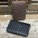 【Ain Soph(アインソフ)】国内原皮オイルメッシュ牛革・ブラックレザーラウンドファスナー長財布(DA1603-CNP)※編み込みレザー、オイルプルアップゴートレザー/山羊革付属 メンズ/レディース【レザーバッグ革財布専門店Vertigo/ヴァーティゴ】