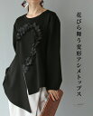 花びら舞う変形アシメトップス【新作11月14日】「Vieo」トップス 40代 50代 60代 レディース ミセス レディースファッション 上品 きれいめ 婦人服 体型カバー 着回し ゆったり フリーサイズ お洒落 大人 花びら舞う変形アシメトップス Vieo