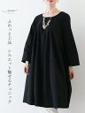 「Vieo」ワンピース きれいめ セミフォーマル スウェット 黒ワンピース ブラック 体型カバー 婦人服 大人 上品 着回し 40代 50代 60代 レディース ゆったり お洒落 フリーサイズ レディースファッション ミセスファッション 長袖 楽なのに綺麗見え異素材チュニック Vieo