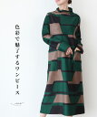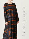 40代 50代 60代 【再入荷9月15日】「Vieo」和やか柄のリラクシーワンピース ゆったり レディース Vieo ヴィオ きれいめ シンプル 大人 上品 長袖 お出掛け 秋冬 柄 総柄 シック モダン ロング丈 フリーサイズ レディースファッション お家時間
