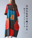 自由な色彩で魅了する 鮮やかアートワンピース【再入荷6月20日】「Vieo」ワンピース 40代 50代 60代 半袖 きれいめ 体型カバー 婦人服 大人 上品 着回し レディース ゆったり お洒落 フリーサイズ レディースファッション ミセスファッション ロング丈 自由な色彩で魅了する 鮮やかアートワンピース Vieo
