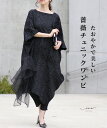 聡明な美しさを 華やぐワンピース 【再入荷7月30日】「Vieo」ワンピース 40代 50代 60代 レディース ミセス レディースファッション 黒 上品 きれいめ 婦人服 体型カバー 着回し ゆったり フリーサイズ お洒落 大人 聡明な美しさを 華やぐワンピース Vieo
