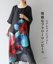 優雅な花模様ワンピース【再入荷4月15日】「Vieo」◎◎ワンピース きれいめ 体型カバー 婦人服 大人 上品 着回し 40代 50代 60代 レディース お洒落 フリーサイズ Vieo ゆったり お出掛け 春夏 春服