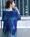 光を纏う、青の幻想 チュニックワンピース【再入荷8月30日】「Vieo」ワンピース 40代 50代 60代 レディース ミセス レディースファッション 半袖 上品 きれいめ 婦人服 体型カバー 着回し ゆったり フリーサイズ お洒落 大人 光を纏う、青の幻想 チュニックワンピース Vieo