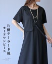 片側テーラード風 モードワンピース【再入荷9月15日】「Vieo」ワンピース 40代 50代 60代 レディース ミセス レディースファッション 上品 きれいめ 半袖 婦人服 体型カバー 着回し ゆったり フリーサイズ お洒落 大人 片側テーラード風 モードワンピース Vieo