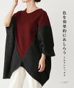 40代 50代 60代【再入荷♪♪2月8日20時より】(レッド)「Vieo」これ一枚で決まり異素材切り替えチュニックゆったり レディース Vieo ヴィオ きれいめ シンプル 大人 上品長袖 オケージョン 秋冬 リラックス おうち時間 お出掛け