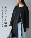 「Vieo」ワンピース 40代 50代 60代 きれいめ セミフォーマル レディースファッション ミセスファッション スウェット 黒ワンピース ブラック 異素材 体型カバー 婦人服 大人 上品 着回し ゆったり お洒落 フリーサイズ 長袖 楽なのに綺麗見え異素材チュニック Vieo