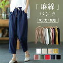 春夏のカジュアルスタイルに、快適なリネン素材とゴムウエストで着心地の良いマルチ着回し9分丈パンツ。麻綿パンツ レディース ウエストゴム テーパードパンツ 麻綿風パンツ ゆったり ボトムス 9分丈 無地 柄 美脚 リネンパンツ おしゃれ 母の日 リネン ゴムウエスト 細身見え カジュアル マルチ着回し テーパード ハーレム 軽量 洗える ギフト