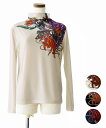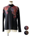 繊細な線画のダリアが美しいプルオーバー /【web限定 10%OFF】mash mania モックネックプルオーバー ダリア【送料無料】/レディース 日本製 柄 トップス 洗える 長袖 ブラック マッシュマニア