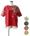 花束を描いた華やかなTシャツ /mash mania Tシャツ Happy Botanical【送料無料】/レディース 日本製 柄 洗える カットソー マッシュマニア