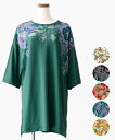 花束を描いたハッピーな柄 /mash mania オーバーサイズTシャツ Happy Botanical【送料無料】/レディース 日本製 柄 洗える 手洗い可 カットソー チュニック マッシュマニア