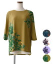 花束を描いたハッピーな柄 /mash mania チュニック Happy Botanical【送料無料】/レディース 日本製 柄 洗える 手洗い可 カットソー チュニック マッシュマニア