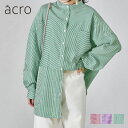 ストライプパッチワークシャツ レディース アパレル 春夏 服【10%オフクーポン有】【P5倍】【SALE】レディース トップス シャツ 長袖 ストライプ 柄 リボン ゆったり レッド パープル グリーン 《acro》アクロ ストライプパッチワークシャツ