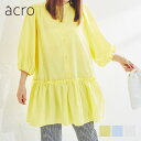 ボリューム袖ティアードチュニック レディース アパレル 春夏 服【10%オフクーポン有】【P5倍】【SALE】レディース チュニック トップス シャツ ブラウス パフスリーブ 透け感 ミニワンピース ブルー 白 イエロー《acro》アクロ ボリューム袖ティアードチュニック
