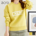 スウェット風ロゴニット アパレル レディース 服【10%オフクーポン有】【P5倍】【SALE】トップス レディース カジュアル ニットプルオーバー ベージュ グレー イエロー《acro》アクロ スウェット風ロゴニット
