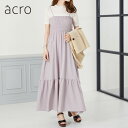 シャーリングキャミワンピース アパレル 春夏 服【10%オフクーポン有】【P5倍】【SALE】レディース ワンピース シャーリング フェミニン 伸縮性 ストレッチ素材 ストレスフリー 裏地付き グレー《acro》アクロ シャーリングキャミワンピース