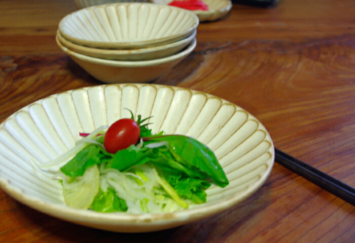 人気の「kinariしのぎシリーズ」から、朝顔のような形のパスタ皿です。