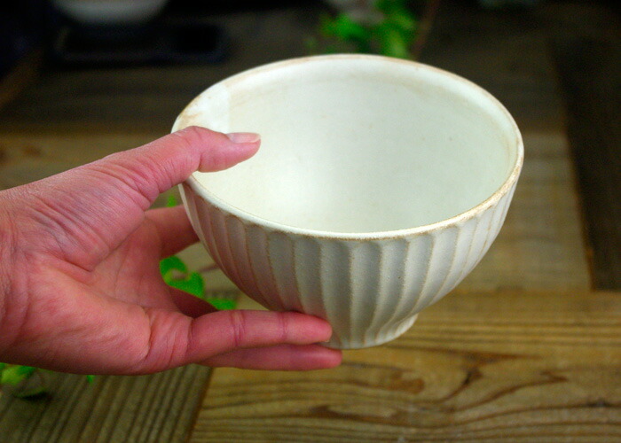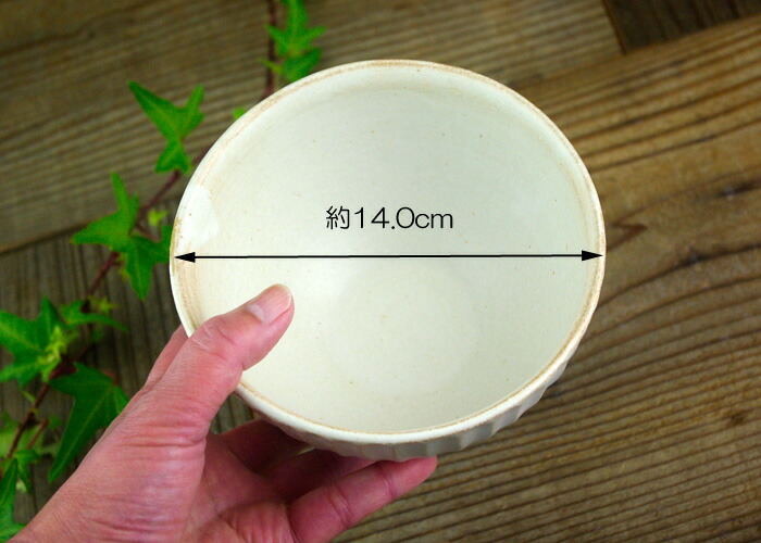 写真通りのアイボリーのとても素敵な器で手触りがよく、片手でも持てるちょうどいい大きさ。買うのにすんごく悩みましたがしのぎの模様が好きなのでこの器にしてよかったです。しっかり目止めをして長く大切に使いたいと思います。