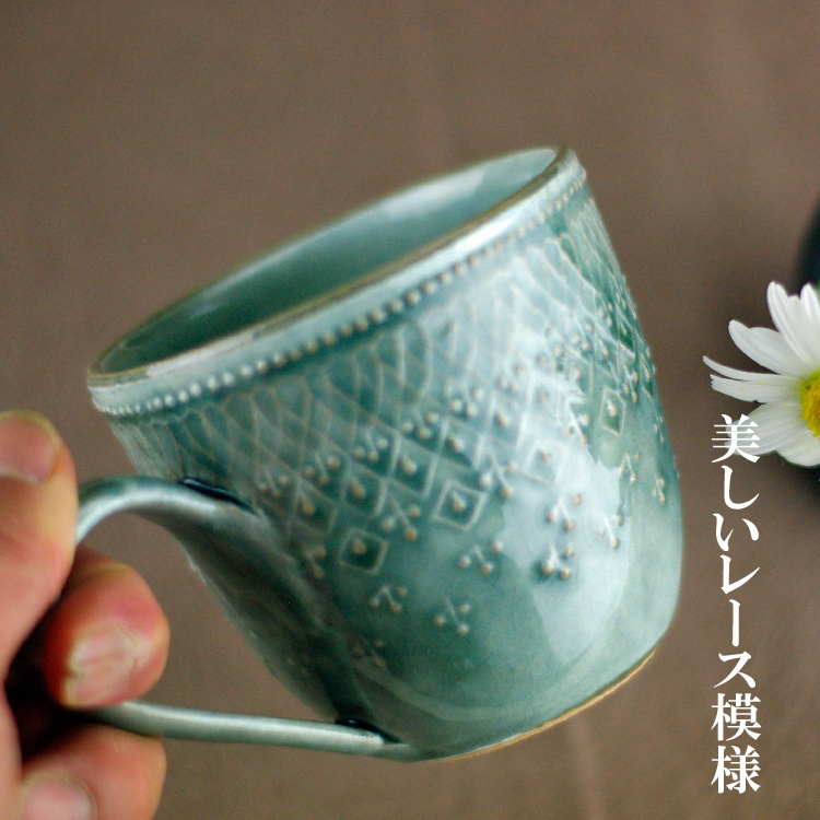 とっても繊細な模様のフレンチレースのマグカップ。