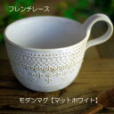 こまかなレース模様が美しいモダンマグ益子焼 フレンチレース モダンマグ マットホワイト (カップ フリーカップ) おしゃれ かわいい レース模様 北欧風 モダン 洋風 和食器 (食洗機対応 電子レンジ使用可) ギフト プレゼント (新生活 母の日 父の日 敬老の日 内祝い)
