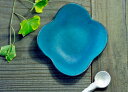 お花の形をした 小さなプレート益子焼 シャビーターコイズ 花皿 青緑 トルコブルー ブルー かわいい おしゃれ モダン 小皿 陶器 和食器 (食洗機対応 電子レンジ使用可)ギフト 名入れ(別料金)