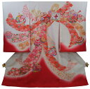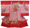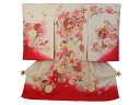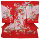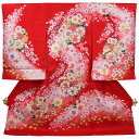 フードセットプレゼント!送料無料♪正絹初着(お宮参り・産着)女の子「ラメ入り赤地に花」【1117PUP2】
