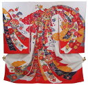 フードセットプレゼント!送料無料♪正絹初着(お宮参り着物・産着)女の子「赤地に絞りと刺繍のまりと花」【10P03Dec16】