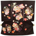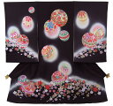 フードセットプレゼント!送料無料♪正絹初着(お宮参り着物・産着)女の子「黒地にまりと花づくし」【10P03Dec16】