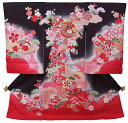 フードセットプレゼント!送料無料♪正絹初着(お宮参り着物・産着)女の子「黒地ぼかしに花鈴とのしと松竹梅」【10P03Dec16】