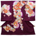 フードセットプレゼント!送料無料♪正絹初着(お宮参り・産着)女の子「紫地にまりと花」