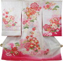 フードセットプレゼント!送料無料♪正絹初着(お宮参り着物・産着)女の子「白地に花車とピンクの花づくし」【smtb-k】【w3】【10P03Dec16】