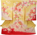 フードセットプレゼント!送料無料♪正絹初着(お宮参り・産着)女の子「黄色地にまりと枝垂桜」【1117PUP2】
