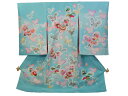 フードセットプレゼント!送料無料♪正絹初着(お宮参り着物・産着)女の子「水色地に蝶と風船とまり」