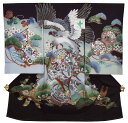 紋入れ・フードセットプレゼント!送料無料♪正絹初着(お宮参り・産着)男の子「正絹初着(お宮参り着物・産着)「変わり織り・黒地に鷹と宝船」【P27Mar15】
