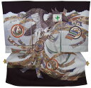 紋入れ・フードセットプレゼント!送料無料♪正絹初着(お宮参り・産着)男の子「黒地に鷹と打出の小づちと疋田雲」【1117PUP2】
