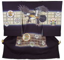 紋入れ・フードセットプレゼント!送料無料♪正絹初着(お宮参り着物・産着)男の子「紺地に格子に鷹」【10P03Dec16】