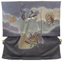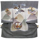 紋入れ・フードセットプレゼント!送料無料♪正絹初着(お宮参り着物・産着)男の子「黒とグレー地に鷹と束ね熨斗」【10P19Dec15】