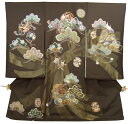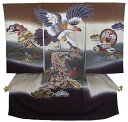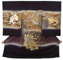 紋入れ・フードセットプレゼント!送料無料♪正絹初着(お宮参り着物・産着)「鷹と宝船(茶と黒のぼかし)」【10P03Dec16】